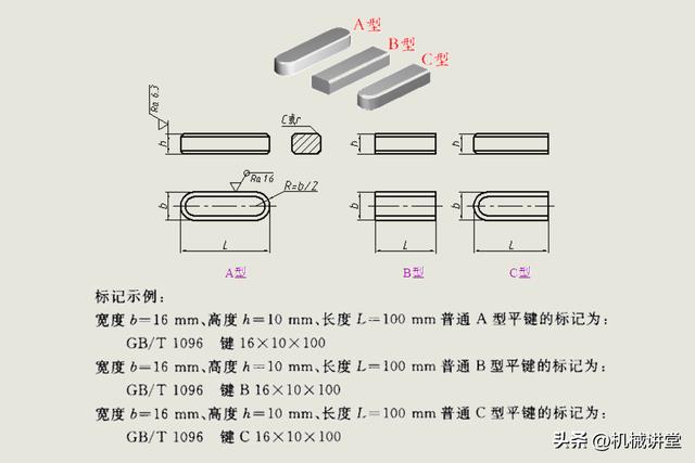 普通平键分为A、B、C三种类型,用途不同,标注格式也有区别,其中A型最常用,新手重点掌握,另外两种按需记忆即可,不用混淆。