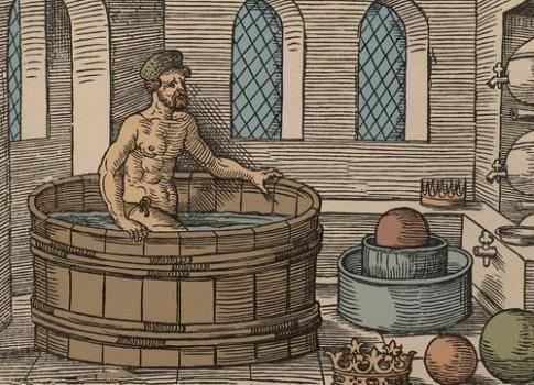 说到阿基米德,就不得不提那个家喻户晓的“洗澡故事”,这也是科学史上最经典的瞬间之一。传说叙拉古的国王希伦二世打造了一顶纯金皇冠,却怀疑工匠在其中掺了银子,于是命阿基米德在不破坏皇冠的前提下查明真相。这个问题把阿基米德难住了好几天,他茶饭不思,直到有一天走进公共浴池。当他踏入浴缸的那一刻,发现水位随着身体的浸入而上升,溢出的水量似乎与身体排开的体积有着某种神秘的联系。刹那间,灵光如闪电般划破迷雾,他兴奋地直接从浴缸里跳了出来,赤身裸体地奔跑在叙拉古的街道上,高声大喊:"Eureka!Eureka!”(意为“我找到了!”)。这一刻的狂喜,定格成了人类探索真理的永恒画面。由此诞生的浮力定理告诉我们:浸在液体中的物体所受到的向上浮力,等于它排开液体的重量。这个看似简单的原理,解开了为什么万吨巨轮能浮在海面、为什么人在死海能轻松漂浮的秘密,更是奠定了流体静力学的基石。
