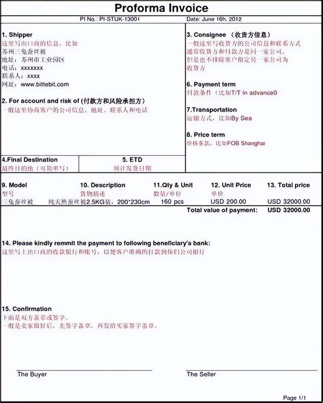 2、PI(形式发票)