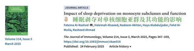 ①Impact of sleep deprivation on monocyte subclasses and function, The Journal of Immunology, Volume 214, Issue 3, March 2025, Pages 347–359.