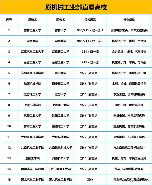 原机械工业部直属的15所高校