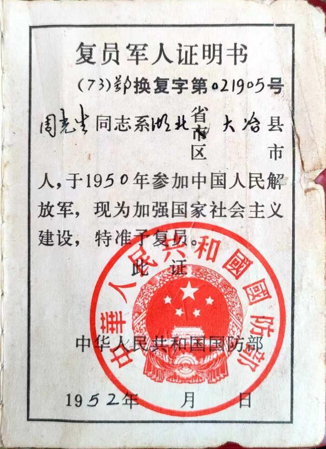一本泛黄的退伍证