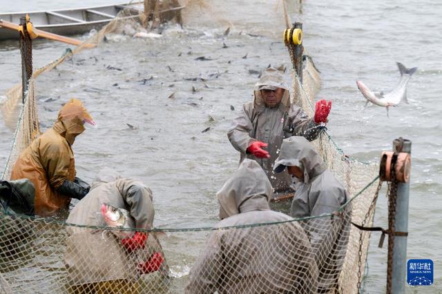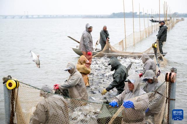 3月18日,工作人员在杏福农业生态园的湖里捕鱼。新华社记者 伍志尊 摄