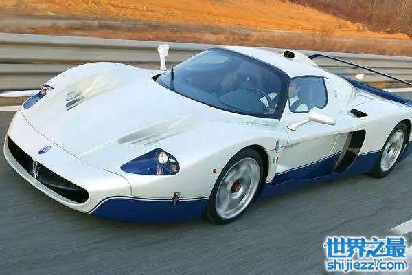 玛莎拉蒂MC12是一款中置引擎超级跑车,亮相于2004年的日内瓦车展。MC12车身由碳纤维制造,承载式底盘采用碳纤维和Nomex蜂窝夹层结构制造。玛莎拉蒂MC12搭载自然吸气6升12缸发动机,可在7500rpm时爆发出465kW的动力,最高车速超过330km/h,0-100km/h加速时间仅3.8秒。目前全世界也只有50辆,限量级纯手工打造。