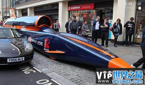 这款就是目前世界上最快的车,名叫:音速之风陆地极速车。是美国斯塔克斯所发明的,被称为是陆地上的速度之最。最高时速可达到3218公里/小时,连战斗机的速度都比不上它,并超越了以往所有的记录。3218公里/小时的时速究竟有多快呢?也许您对数字敏感,那么就换个方式给大家解释,我国北京到新疆的距离是3168.7公里,音速之风陆地极速车1个小时的时间就能到达,飞机的速度都无法达到。