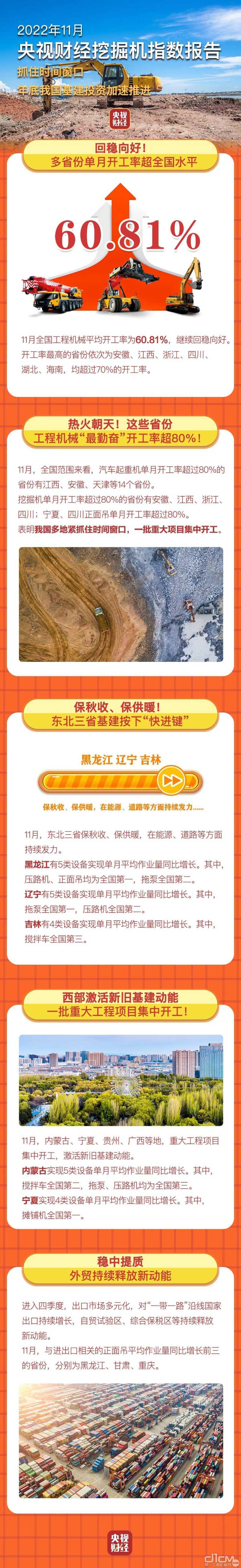11月全国工程机械平均开工率为60.81%,继续回稳向好。