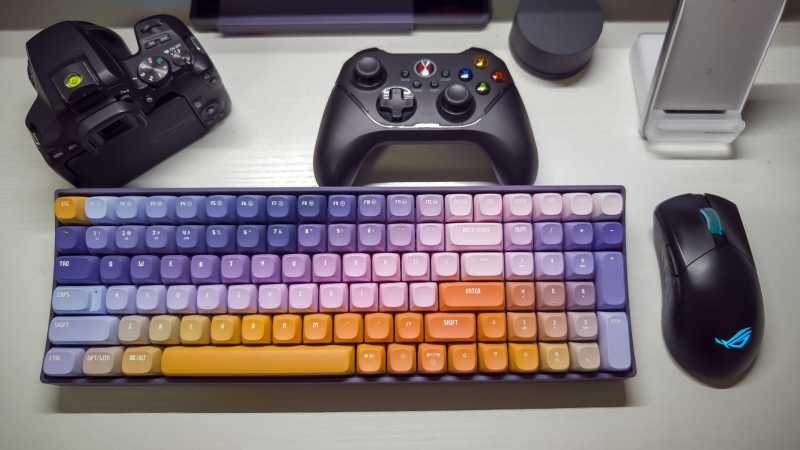 这个颜色搭配我相信大家应该挑不出什么硬伤了吧,我见过所有的配色中这个算是最独树一帜的一款了,和艺术家的联名款果然不会让人失望,颜色和红轴的敲击声也极为匹配,所有的美好都值得用这款键盘来记录。