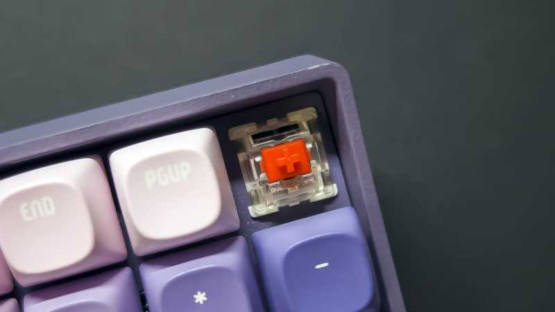 做为一款机械键盘最重要的当然是手感,洛斐星河小翘采用的是G红Pro轴体,2mm触发4mm总键程,这个是没有段落感的,非常舒服,同时轴体弹片触点也做了升级,提升了抗氧化性能而且是支持热插拔的。之前我选机械键盘会优先选择青轴,不是因为清脆的声音,而是因为打字手感非常轻,不用费力去按,不过随轴体不断的进步,现在大多数人应该会选择红轴,45gf触发已经非常轻巧了。