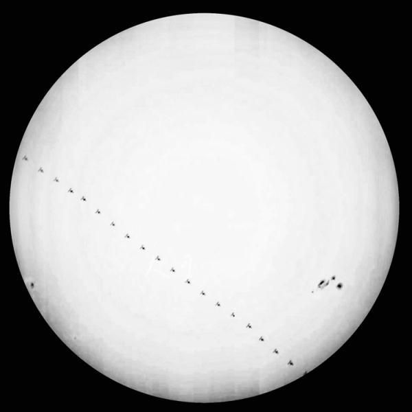 ↑2022年9月2日,在江苏盐城上空拍摄到的中国空间站“凌日”。陈可 摄