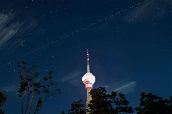 ↑“我来到颐和园架设了两台相机,一次性从两个角度拍中国空间站过境”。耿夏(10岁)摄