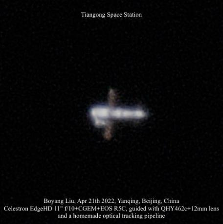 控制天文望远镜自动跟踪拍摄中国空间站影像