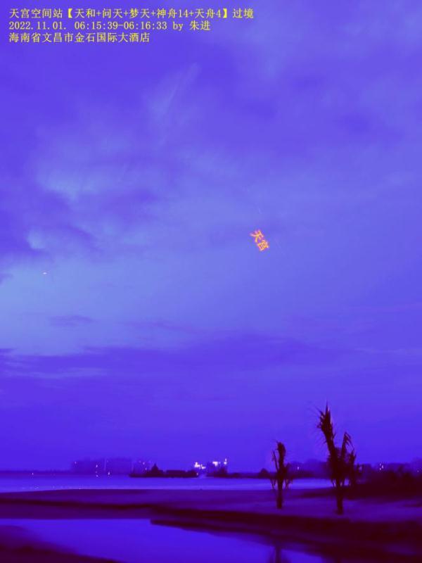 ↑2022年11月1日,中国空间站过境海南文昌。朱进 摄