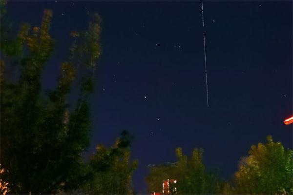 ↑中国空间站飞越新疆霍尔果斯口岸。卢斌 摄
