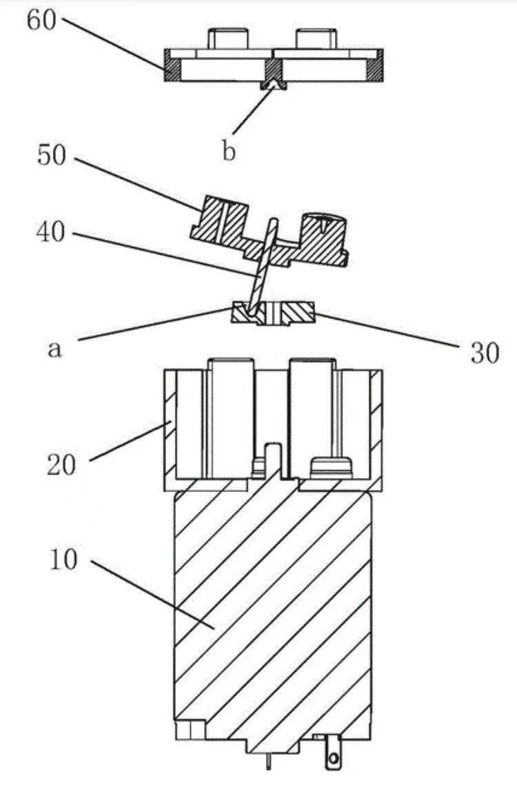 现有技术的传动装置,在偏心轮30偏心位置处的下凹槽a和在囊座60中央位置处的上凹槽b都是宽松的喇叭口,传动轴40的下端宽松地安装在下凹槽a中,传动轴40的上端宽松地安装在上凹槽b中。工作时,传动轴40的下端在下凹槽a的喇叭口中以较大的枢轴转动,会产生不同程度的振动和摆动,从而产生不良的噪音。从而需要作为核心功能件的偏心轮材料,除了具备优异的耐磨性和自润滑性之外,还需要具备优异的吸振性和弹性。苏州维本工程塑料Wintone Z33耐磨静音齿轮专用工程塑料,通过很多应用案例发现,在微型隔膜泵偏心轮的应用上,与传统的POM材料相比,Z33具有更优异的耐磨耐疲劳性和静音性,可以帮助解决POM偏心轮在使用一段时间后容易磨损被顶穿的问题,同时有效降低传动噪音,大幅提高微型隔膜泵的耐疲劳寿命。
