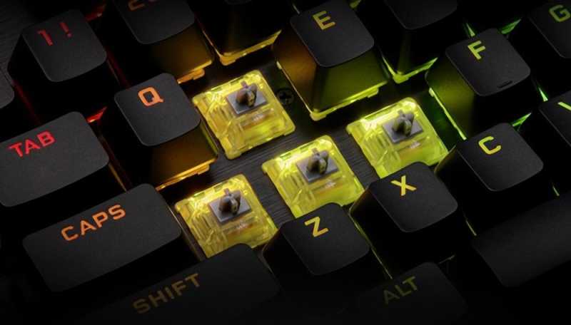 这款海盗船键盘K100有两种键帽可供用户选择,分别为海盗船自主研发的OPX RGB光轴和CHERRY银轴,我个人是比较推荐购买OPX RGB光轴版本的,它配合上海盗船家的AXON技术,能够达到4000Hz的轮询率,寿命也更长。另外,1.0mm触发键程,让回弹更快,也更适合竞技游戏。当然,轴体的选择还是看个人的喜好和敲击习惯,这里只是做一个小推荐。