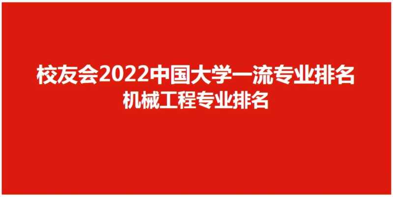 在最新校友会2022中国大学机械工程专业排名(研究型)中,清华大学荣获2022中国八星级专业(8★),位列世界一流专业、中国最顶尖专业行列。上海交通大学、西安交通大学、北京理工大学、浙江大学荣得2022中国七星级专业(7★),挺进世界知名高水平专业、中国顶尖专业行列。中国矿业大学、武汉科技大学、东南大学、东北大学、昆明理工大学、国防科技大学、南京航空航天大学、南京理工大学、华南理工大学、北京邮电大学、北京航空航天大学、浙江工业大学、吉林大学荣膺2022中国六星级专业(6★),迈进世界高水平专业、中国顶尖专业行列。江西理工大学、山东建筑大学、青岛科技大学、北京科技大学、西南石油大学、北京工业大学、北京交通大学、青岛大学、五邑大学荣得2022中国五星级专业(5★),进入世界知名专业、中国一流专业行列。