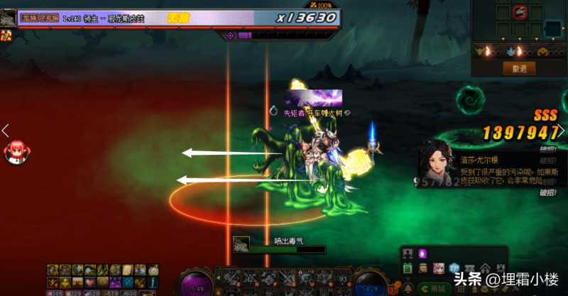 和真龙机制一样,赫斯的部分攻击会在下方产生读条,读条完毕会给全图造成一次伤害,跳跃即可规避这个伤害。