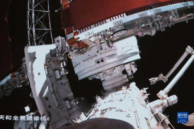 这是空间站“T”字基本构型组装完成后的首次航天员出舱活动,检验了航天员与组合机械臂协同工作的能力。