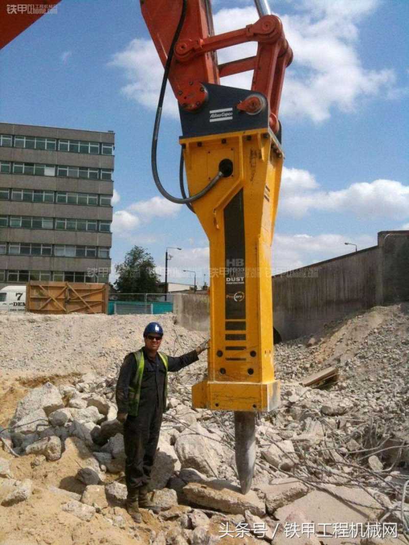 应用于矿山行业的阿特拉斯·科普柯HB10000破碎锤无疑是破碎锤界的明星。这个大块头重大10吨,安装在85吨级的挖掘机上,主要用于初级破碎,作为采石场钻孔爆破施工工艺的替代方式。液压流量为450~530L、min,工作压力为160~180bar,冲击频率为250~380次/min。