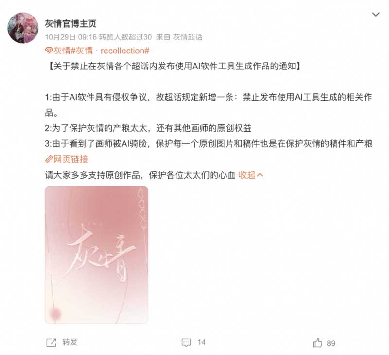 AI 禁止的趋势在各类型的平台蔓延|微博截图