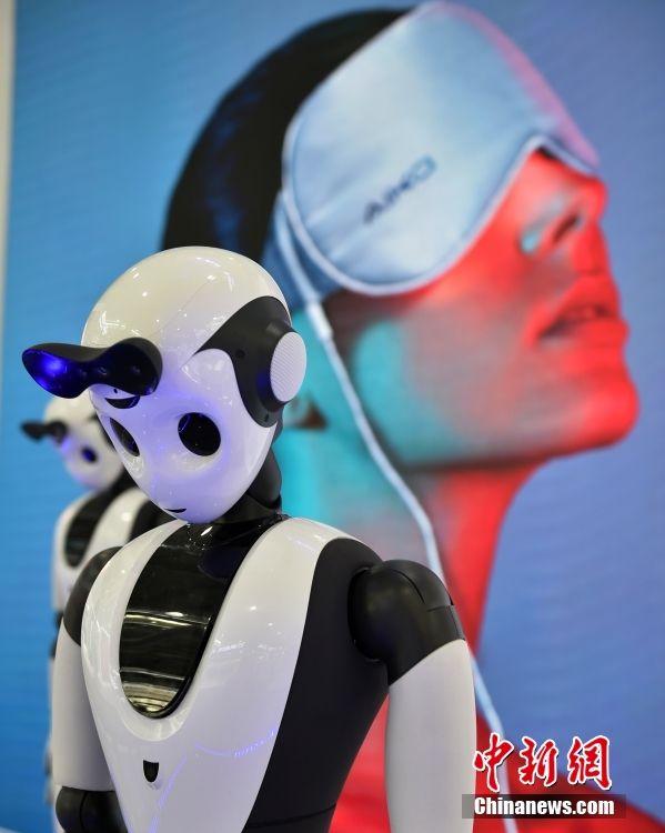 资料图:北京,在服贸会首钢园展区,电信、计算机和信息服务展厅里的舞蹈机器人。中新网记者 李骏 摄