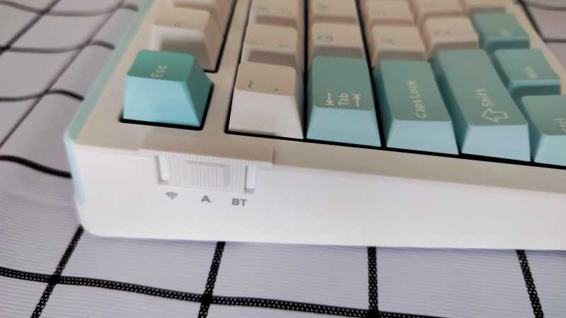 而左侧是数据切换的开关,分别为2.4G、有线和蓝牙。