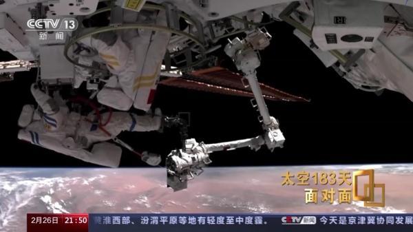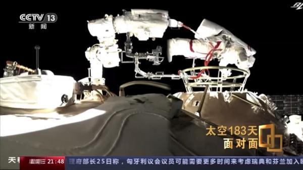 陈冬:大小臂组合有什么好处呢,它多了关节了,因为大臂关节加上小臂的关节,它的关节多它更灵活,它覆盖范围大,而且满足我们各种姿态,我在上面视角最好的时候,我可以看到三舱的全貌,看到三舱是在地球背景墙的衬托下,地球只能当背景墙,我们中国空间站在上面潇洒自由地运行飞翔,那个画面非常非常震撼。我非常想把这个画面留住,我就问地面,我说地面你们能不能看到三舱了?我意思就是你们可以保存一下这张画面,因为毕竟有我这个视角的人确实少,但是我希望去分享。