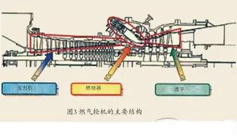 压气机从外界大气环境吸入空气,并经过轴流式压气机逐级压缩使之增压,同时空气温度也相应提高;压缩空气被压送到燃烧室与喷入的燃料混合燃烧生成高温高压的燃气;然后再进入到透平中膨胀做功,推动透平带动压气机和外负荷转子一起高速旋转,实现了气体或液体燃料的化学能部分转化为机械功,并输出功率,这样,燃气轮机就把燃料的化学能转化为热能,又把部分热能转变成机械能。