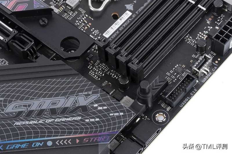 ROG STRIX B760-F GAMING WIFI主板一共提供了4条PCIe插槽,其中最上方的为PCIe 5.0 x16插槽,并进行了金属加固处理,另外3条分别为1条PCIe 3.0 x4插槽和2条PCIe 3.0 x1插槽。