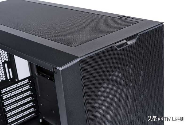 机箱顶部mesh面板卡扣式快拆设计,顶部支持最大 360 冷排,3 颗 120或140mm风扇安装。顶部整面支持拆除,更为方便冷排和风扇的安装。