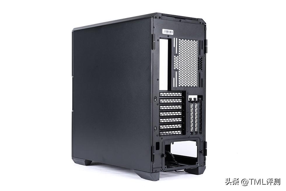 机箱尾部带有1个140mm安装位,7pcie槽位,搭配安装随机附带的显卡竖装支架支持显卡竖装,最下方为快拆电源安装位。