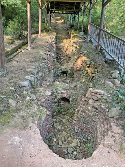 龙窑的结构设计颇为讲究,是南宋时期的斜坡式龙窑,总长48.2米,宽2米,窑壁大约0.3米厚,残窑平均0.95米高,呈19.5°倾斜,分为火膛、窑床和烟口三部分,底部用碎石块铺就,面积达350平方米。