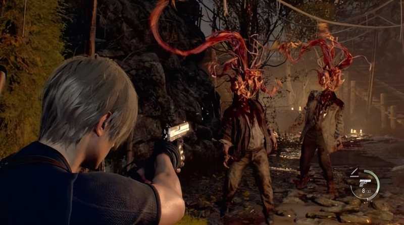 2、游戏系统。恐怖游戏,“吓尿”未免过火,“爽爆”又显癫狂,《生化4》就好比是那个年代的《黑魂》,恰到好处的敌我强弱比,对玩家形成压迫感的同时,也保证了随时出手反杀强敌的可能性。比如最为经典的敌人“电锯男”,一旦被其近身触发一击必杀,里昂当场命丧黄泉,比和威斯克PK还要来得刺激,但电锯男本质上还是个血肉之躯的“普通人”,只要玩家走位灵活,枪法得当,持续积累伤害直至对方轰然倒下拾取掉落物的那一刻,犹如恐怖片结尾主人公逃出生天。这次重制,还增加了“小刀弹反”,给达人视频预留出操作空间,就看佣兵模式上线后又会玩出哪些花样了。