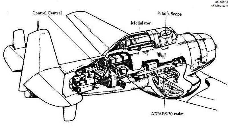 有一架PB-1W的雷达是安装在背上的,雷达受陆地和海面杂波影响更小,同时增强了高空探测能力