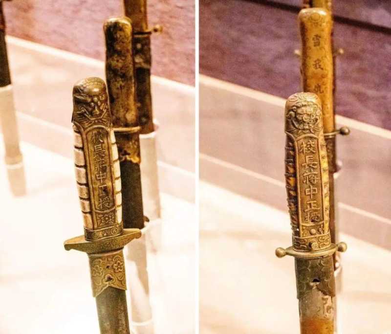 “中正剑”的剑柄上刻有“校长蒋中正赠”,后来变为“校长蒋中正授”字样。虽一字之差,但意义不同。