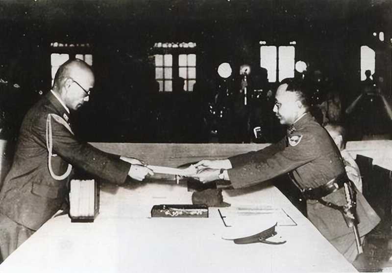 1945年9月9日,中国战区日军无条件投降签字典礼在中国陆军总司令部大礼堂举行。这场举世瞩目的仪式上,何应钦作为中方代表出席。只见他身着国民党军装,戴着一副细框的眼镜,腰间佩戴着一把中正剑,以战胜者的姿态,接受了日军侵华头子岗村宁次递来的投降书,“中正剑”也成为了历史时刻的“见证人”。