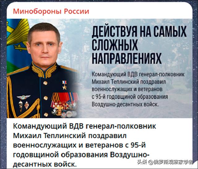 他进一步分析道,若特别军事行动进入收官阶段,俄军将主攻方向转向南部,并渡过第聂伯河展开攻势,那么捷普林斯基极有可能成为朱可夫、罗科索夫斯基、科涅夫式的 “国民将领”。