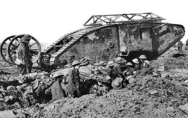 面对泥泞和机枪火力的威胁,双方都在尝试新战术。1916年9月15日,英国首次使用“坦克”——“马克I”坦克,试图突破德军防线。坦克缓慢前行,克服泥泞,保护步兵前进,成为战场上的新武器。