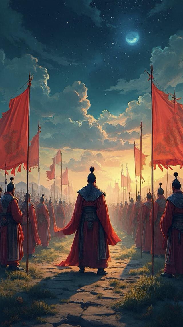 夜幕降临时,韩信的琴声开始变得诡谲。他秘密派出两千轻骑,每人手持一面红色汉旗,如幽灵般潜入赵军侧翼的莽莽山林。月光洒在他们的铠甲上,折射出冷冽的银芒,仿佛死神挥动的镰刀。