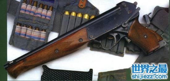 美国汤普生的这种手枪,其实是采用步枪结构的手枪。它实际上也具备步枪的威力。它的装填方法也类似,需要向下折起枪管,手工填入子弹。