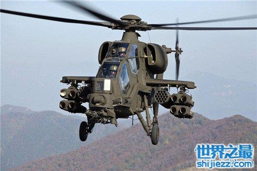 来自我们中国的新武装直升飞机,也叫做武装10,是我们国家中型战斗直升机里面的主力战斗机,它可以搭载6000公斤的重量,并且携带1.5吨的火力,有一个非常好的拓展性,它自带的武器系统包括一个30毫米的机炮,加上反坦克导弹以及空对空导弹,有一个较大的空中火力对抗能力,但相比于阿帕奇来说还是有些不足。推荐阅读:蚊子直升机