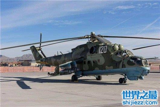 来自俄罗斯的武装直升机,它也是世界上最为先进的军用直升机之一,叫做米24,代号是雌鹿,它是一个多用途的武装直升机,多用来运输救援用,最大可携带1.2吨的物资,上面也有搭载了一定的火力,自带的30毫米机炮,加上反坦克导弹,它的外挂式机架可以搭载空对空导弹,在长距离飞行中有一个灵活性以及机动性,最大速度可以达到335千米每小时。
