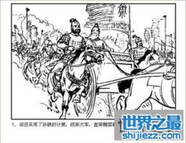公元前354年,魏国军队围赵国都城邯郸,双方战守年余,赵衰魏疲。这时,齐国应赵国的求救,派田忌为将,田忌就是田忌赛马的主人公,孙膑为军师,率兵八万救赵。攻击方向选在哪里?起初,田忌准备直趋邯郸。孙膑认为,要解开纷乱的丝线,不能用手强拉硬扯,要排解别人打架,不能直接参与去打。派兵解围,要避实就虚,击中要害。