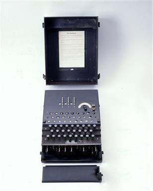 二战期间,采用无线电发送的情报存在被盟军拦截的可能性,于是德国人发明了密码编译机——恩尼格玛机。恩尼格玛机表面看上去就像常用打字机,但功能却与打印机有着天壤之别。键盘与电流驱动的转子相连,可以多次改变每次敲击的数字。相应信息以摩斯密码输出,同时还需要密钥,而密钥每天都会修改。不过,盟军最终还是破译了德国人自认为不可攻破的恩尼格玛密码。