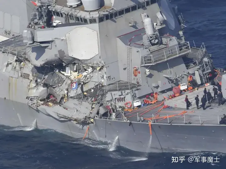 2017年6月,美国海军驱逐舰“菲茨杰拉德”号在日本附近海域与菲律宾货船相撞,驱逐舰上7人死亡,军舰被撞成开豁口。