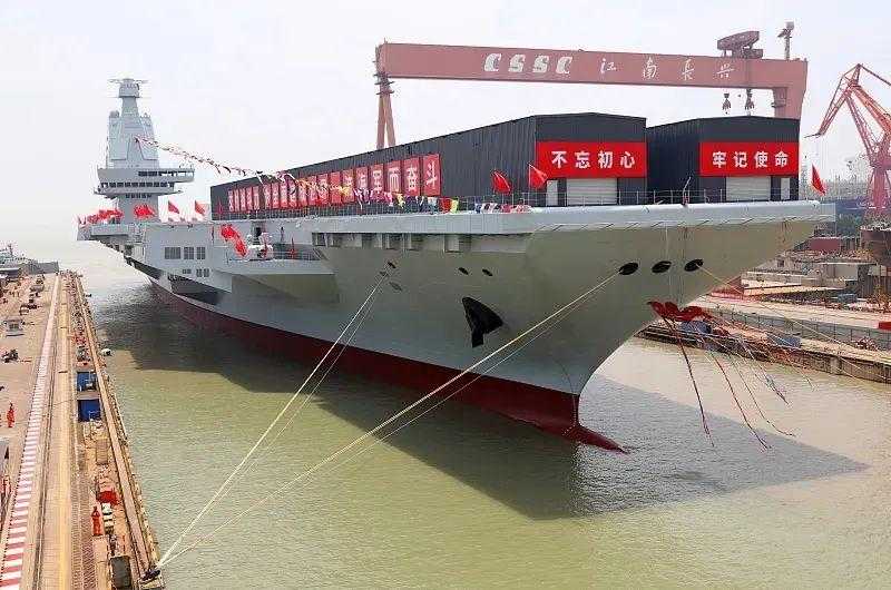 2022年6月17日,中国第一艘弹射起飞,全通直甲板的航空母舰在江南造船厂下水,经中央军委批准,命名为“福建”舰。这也是我国第一艘完全独立设计,采用最新技术建造的大型航空母舰。