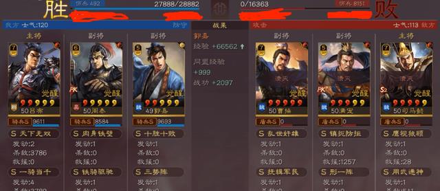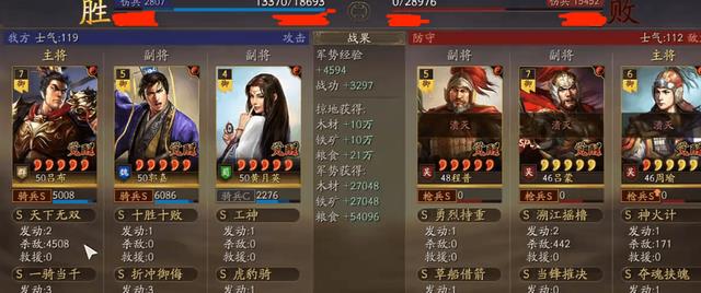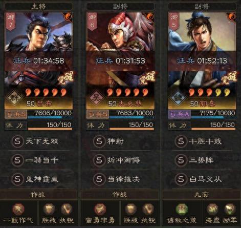 太史慈,折冲御侮可持续2回合降低敌军单体100点统率和智力,并为主将提供2回合抵御状态,对于主将的保护是一个很大的加强,大量的减防也为吕布的伤害提供了伤害前提。当锋摧决可伪报1回合,禁用被动和指挥战法这样的伪报状态,可破开敌方防御,任由吕布发挥。