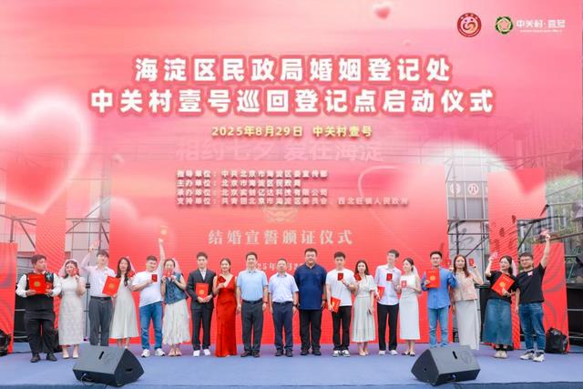 8月29日上午,中关村壹号积极联合海淀区民政局,将婚姻登记处“搬”到了园区中央草坪广场。为科技青年提供极致便利服务,让硬科技园区洋溢最浪漫的温度。七夕佳节,园区科技青年们无需排队,下楼就能办理结婚登记,实现5分钟高效领证,打通婚恋服务的“最后一公里”。