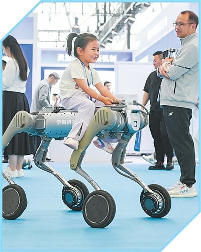 在今年4月举行的第三届中国(安徽)科技创新成果转化交易会上,小朋友在体验一款机器狗。