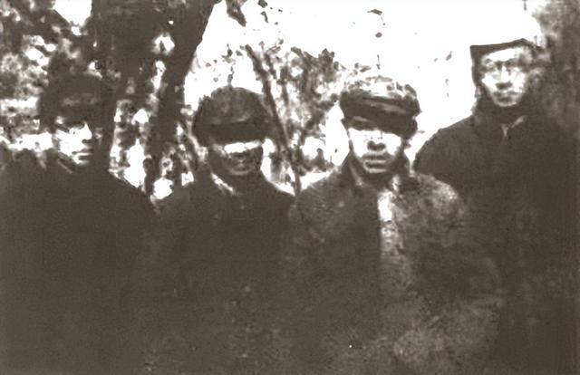 钱志道(左一)、沈鸿(左二)等人在延安合影。(资料片)
